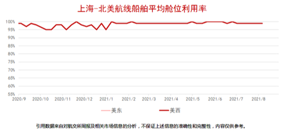 今日欧洲航线EU2110合同早盘开在7560USD/TEU,盘中最高7566USD/TEU,最低7560USD/TEU,尾盘收于7565USD/TEU。从分时图上看,该合同全天窄幅震荡,最终合同收阳,成交量较前一交易日有所减小,合同持仓保持不变。另外,欧洲航线各月份合同上涨为主,其中EU2201合同涨幅最大。 根据上海航运交易所周报数据显示,8月6日,欧洲航线上海港船舶平均舱位利用率接近满载水平,地中海航线上海港船舶平均舱位利用率接近满载。 美西航线方面,UW2110合同早盘开在6450USD/FEU,盘中最高6450USD/FEU,最低6432USD/FEU,最终合同收于6432USD/FEU。从分时图上看,该合同小幅下跌,最终合同收阴,成交量较前一交易日有所减小,合同持仓有所增加。另外,今日美西航线各月份合同涨跌不一,其中UW2108合同跌幅最大。 根据上海航运交易所周报数据显示,上海港美西、美东航线的平均舱位利用率基本保持满载水平。