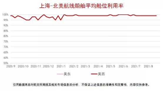 根据上海航运交易所周报数据显示,上海港美西、美东航线的船舶平均舱位利用率基本维持满载水平。
