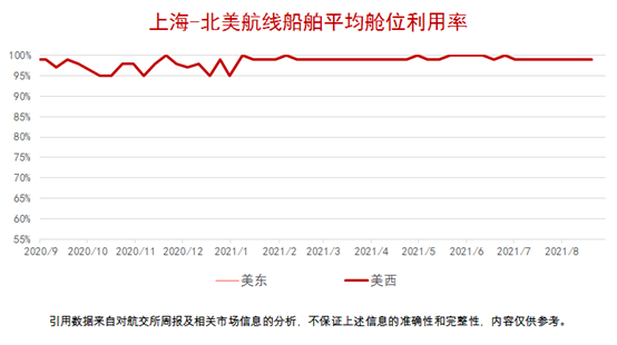 今日欧洲航线EU2111合同早盘开在7600USD/TEU,盘中最高7610USD/TEU,最低7600USD/TEU,尾盘收于7610USD/TEU。从分时图上看,该合同小幅上涨,最终合同收阳,成交量较前一交易日相当,合同持仓有所增加。另外,欧洲航线各月份合同全面上涨,其中EU2202合同涨幅最大。 根据上海航运交易所周报数据显示,8月20日,欧洲航线上海港船舶平均舱位利用率维持满载水平,地中海航线上海港船舶平均舱位利用率接近满载水平。 美西航线方面,UW2111合同早盘开在6100USD/FEU,盘中最高6140USD/FEU,最低6100USD/FEU,最终合同收于6140USD/FEU。从分时图上看,该合同高开高走,最终合同收阳,成交量较前一交易日相当,合同持仓略有增加。另外,今日美西航线各月份合同全线上涨,其中UW2202合同涨幅最大。 根据上海航运交易所周报数据显示,上海港美西、美东航线的船舶平均舱位利用率基本维持满载水平。