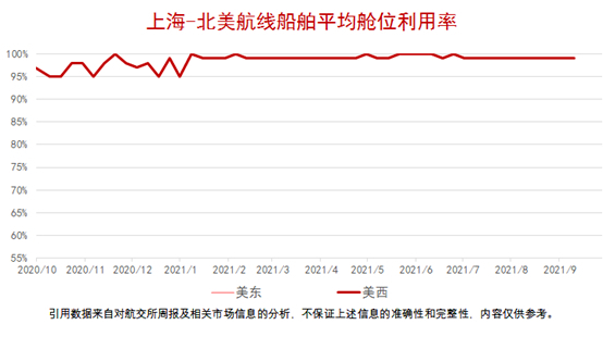 今日欧洲航线EU2111合同早盘开在7545USD/TEU,盘中最高7545USD/TEU,最低7540USD/TEU,尾盘收于7540USD/TEU。从分时图上看,该合同弱势整理,成交量较前一交易日有所减少,合同持仓保持不变。另外,欧洲航线各月份合同跌多涨少,其中EU2109合同跌幅最大。 根据上海航运交易所周报数据显示,9月10日,欧洲航线上海港船舶平均舱位利用率接近满载水平,地中海航线上海港船舶平均舱位利用率接近满载。 美西航线方面,UW2111合同早盘开在6445USD/FEU,盘中最高6445USD/FEU,最低6430USD/FEU,最终合同收于6430USD/FEU。从分时图上看,该合同窄幅震荡,成交量较前一交易日有所减小,合同持仓有所增加。另外,今日美西航线各月份合同涨跌不一,其中UW2112合同涨幅最大。 根据上海航运交易所周报数据显示,上海港美西、美东航线的平均舱位利用率基本保持满载水平。
