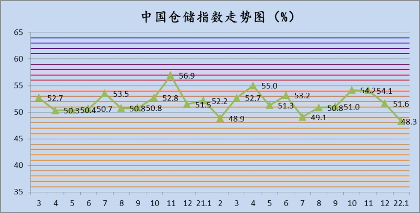 中储发展股份有限公司总裁助理王勇认为:本月指数回落3.3个百分点至48.3%,时隔五个月后再次落入50%荣枯线以下,反映出仓储行业受春节临近以及严寒天气影响,运行压力有所加大,库存水平及周转效率双双下滑。品种表现有所分化,消费品受节日因素提振,业务需求仍然表现良好;大宗商品受季节因素影响,需求强度进一步下降。仓储市场租金继续上涨,收费价格指数本月达到两年来新高。后期来看,2月份受工作日减少、节日因素消退、大宗商品淡季持续及部分地区疫情等因素影响,仓储业务需求难有好转,预计后期行业运行仍有压力。
