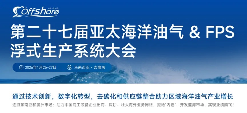 2026年1月26日至27日,第二十七届亚太海洋油气大会 & FPS浮式生产系统大会将盛大起航。本届大会以“通过技术创新、数字化转型、去碳化和供应链整合助力区域海洋油气产业增长”为主题,旨在汇聚全球能源巨头、顶尖FPSO承包商及海工装备企业,共同聚焦亚太地区千亿级市场机遇,并通过技术创新、数字化转型与去碳化,驱动区域海洋油气产业增长,为中国海工企业“出海”东南亚及澳洲市场提供绝佳契机。